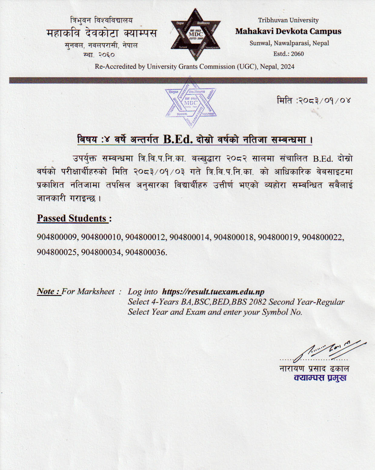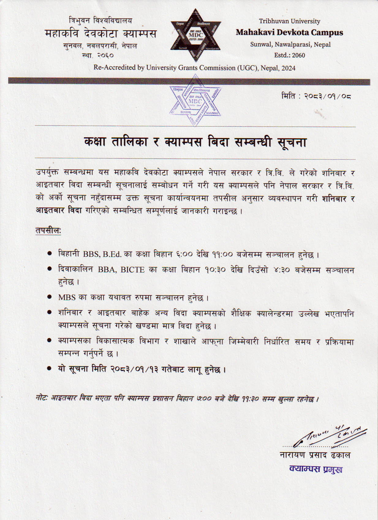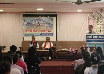 मिति २०८२/१२/२० गतेका दिन महाकवि देवकोटा क्याम्पस अन्तर्गत अतिरिक्त क्रियाकलाप शाखाको आयोजनामा यसै क्याम्पसको सभाहलमा क्याम्पसद्वारा सञ्चालन गरिएको खेलकूद प्रतियोगितामा विजेता बनेका विद्यार्थीहरुलाई हौसला प्रदान गर्ने उद्धेश्यले आयोजना गरिएको पुरस्कार