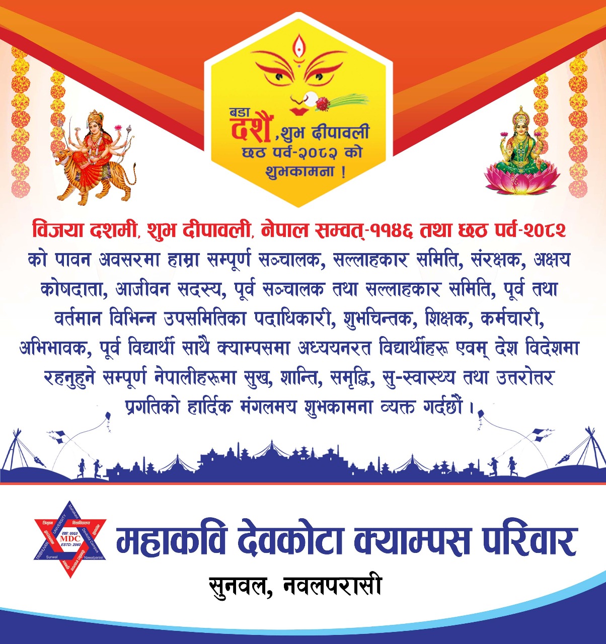 महाकवि देवकोटा क्याम्पसको आयोजनामा आज मिति २०८२/०५/०९ गते सोमबारका दिन क्याम्पसमा अध्ययनरत विद्यार्थीहरुलाई नेपाली संस्कृतिको बारेमा ज्ञान प्रदान गर्ने उद्धेश्यले यसै क्याम्पसको सभाहलमा संस्कृति विशेष कार्यक्रम सम्पन्न भएको छ ।