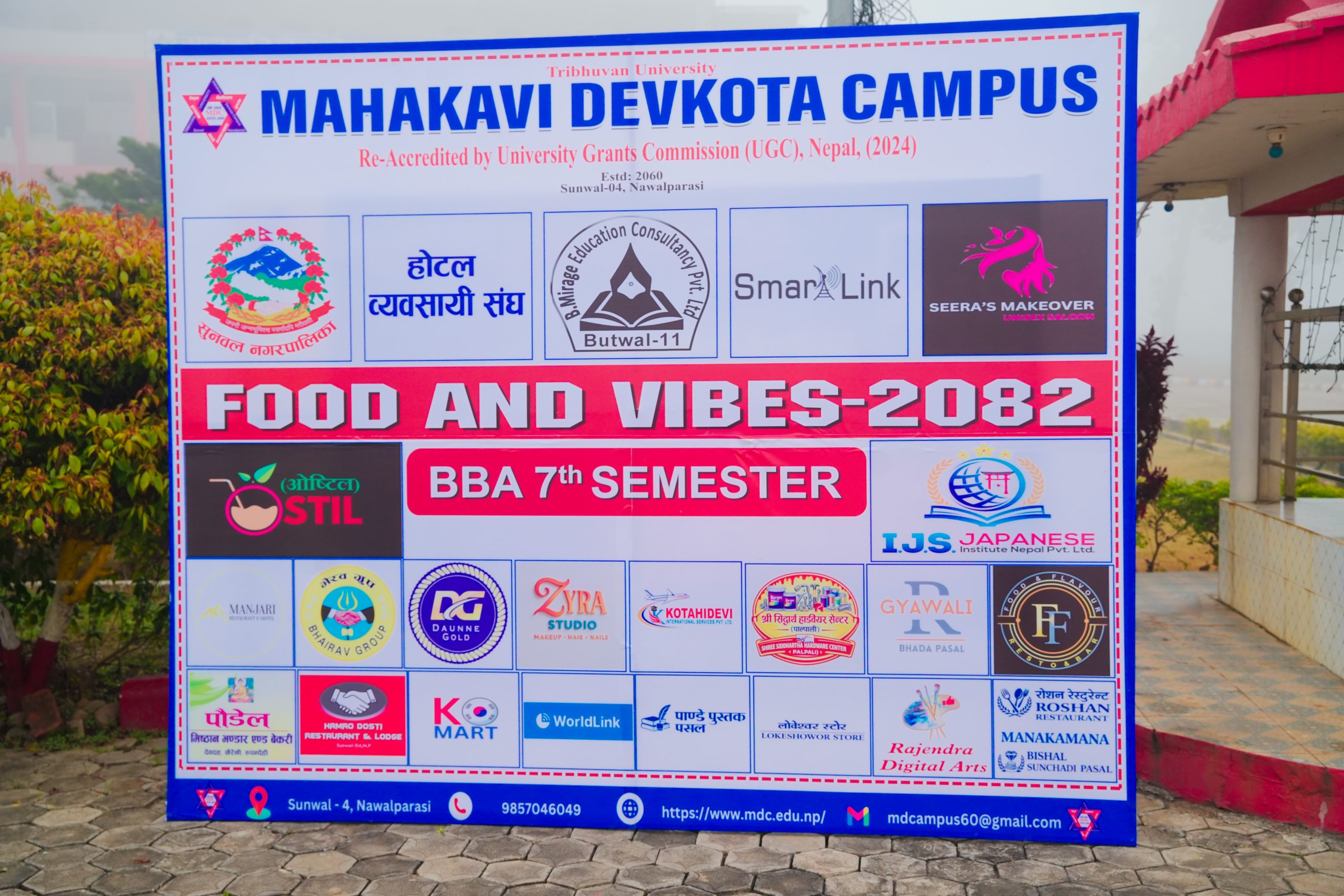 मिति २०८२/१०/२५ गतेका दिन महाकवि देवकोटा क्याम्पस अन्तर्गत बि.बि.ए. सातौँ सेमेस्टरमा अध्ययनरत विद्यार्थीहरुको आयोजनामा यसै क्याम्पसको प्राङ्गणमा क्याम्पसमा अध्ययनरत विद्यार्थीहरुलाई प्रयोगात्मक व्यवसायिक ज्ञान प्रदान गर्ने उद्धेश्यले आयोजना गरिएको Food and Vibes 2082 सम्पन्न भएको छ ।