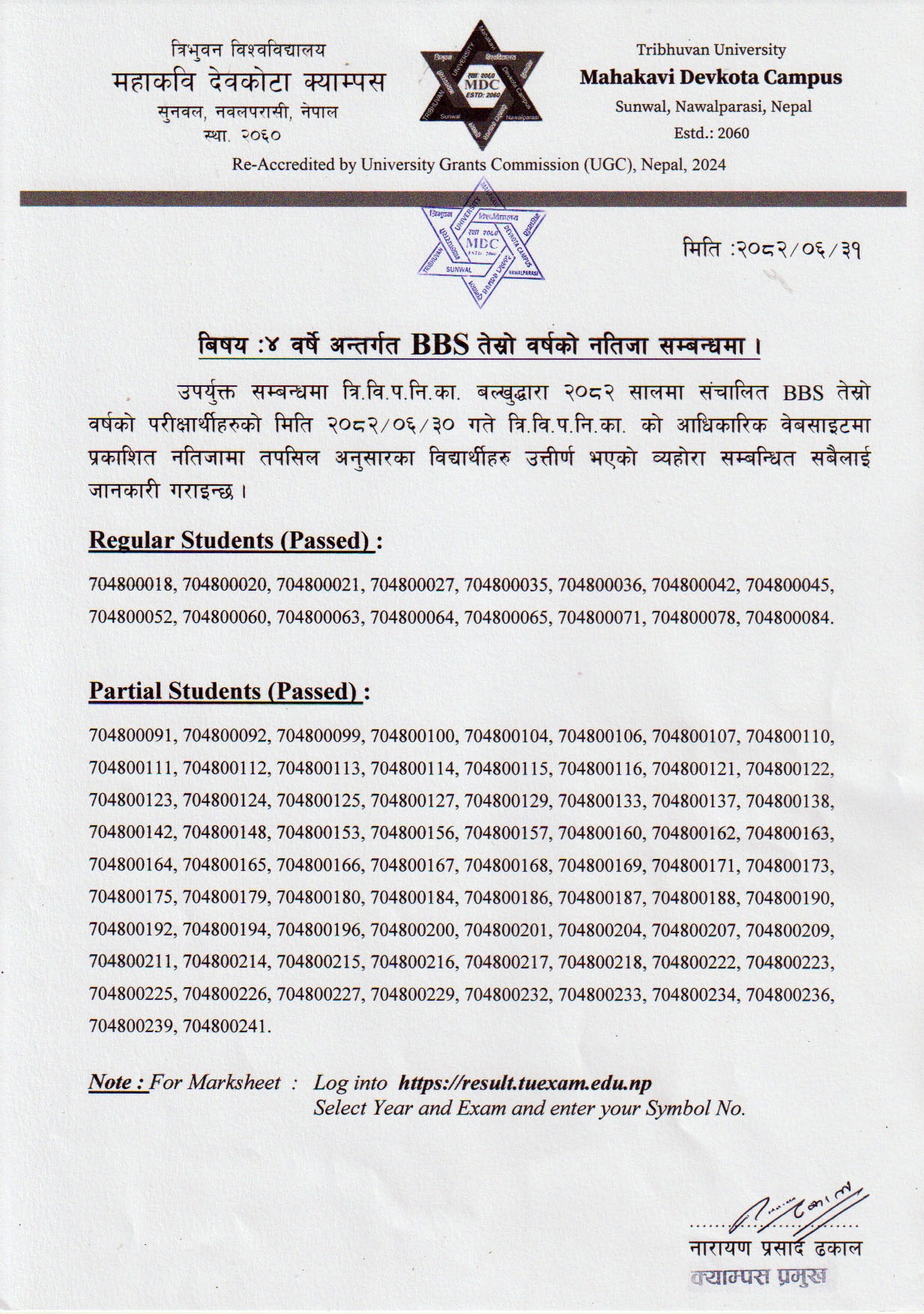 BBS 3rd Year 2078 Batch Result