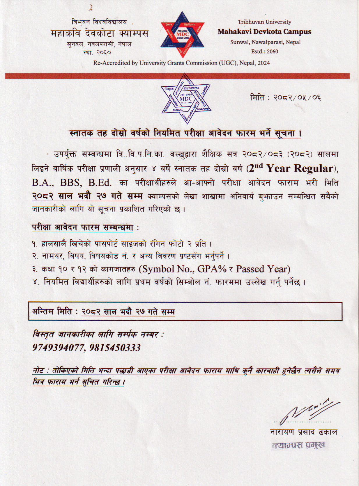 Exam Form Fillup Notice to 2nd Year [REGULAR STUDENTS ONLY]