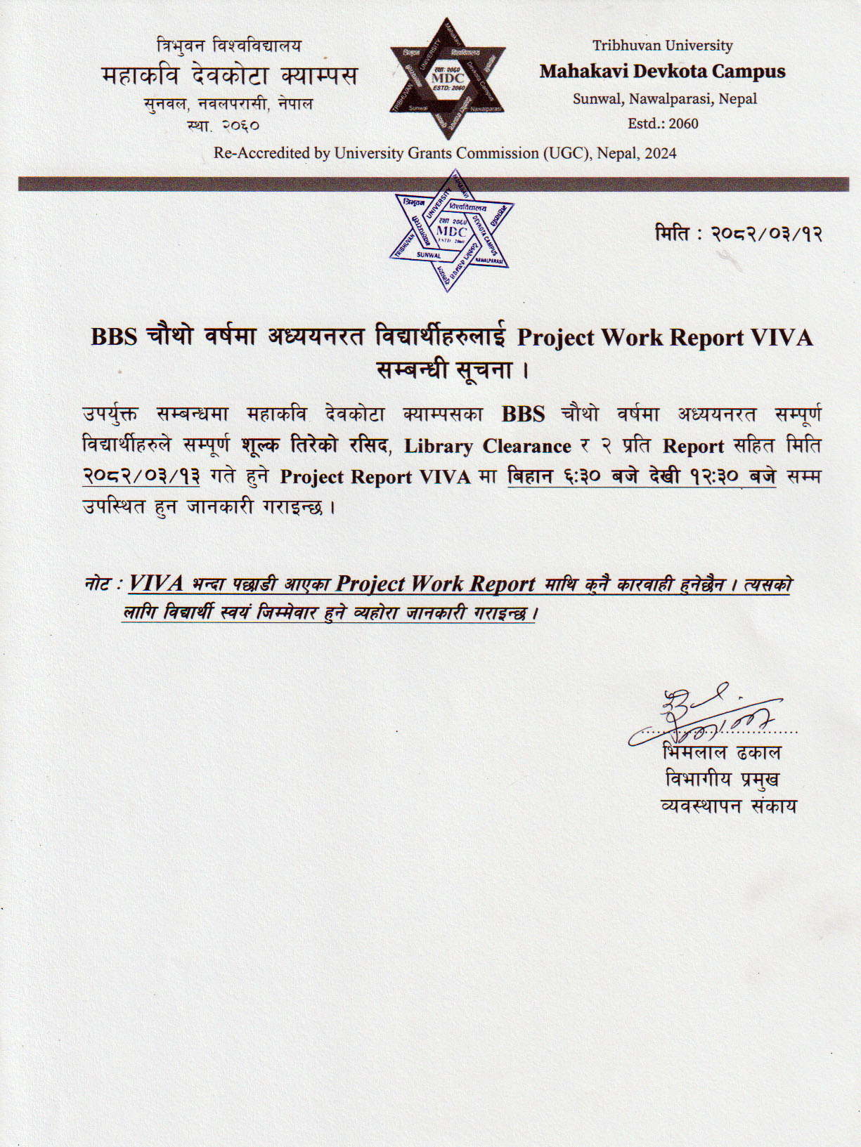 महाकवि देवकोटा क्याम्पस अन्तर्गत स्नातक तह BBA र BICTE तेस्रो सेमेस्टरमा अध्ययनरत विद्यार्थीहरुको आयोजना, अतिरिक्त...