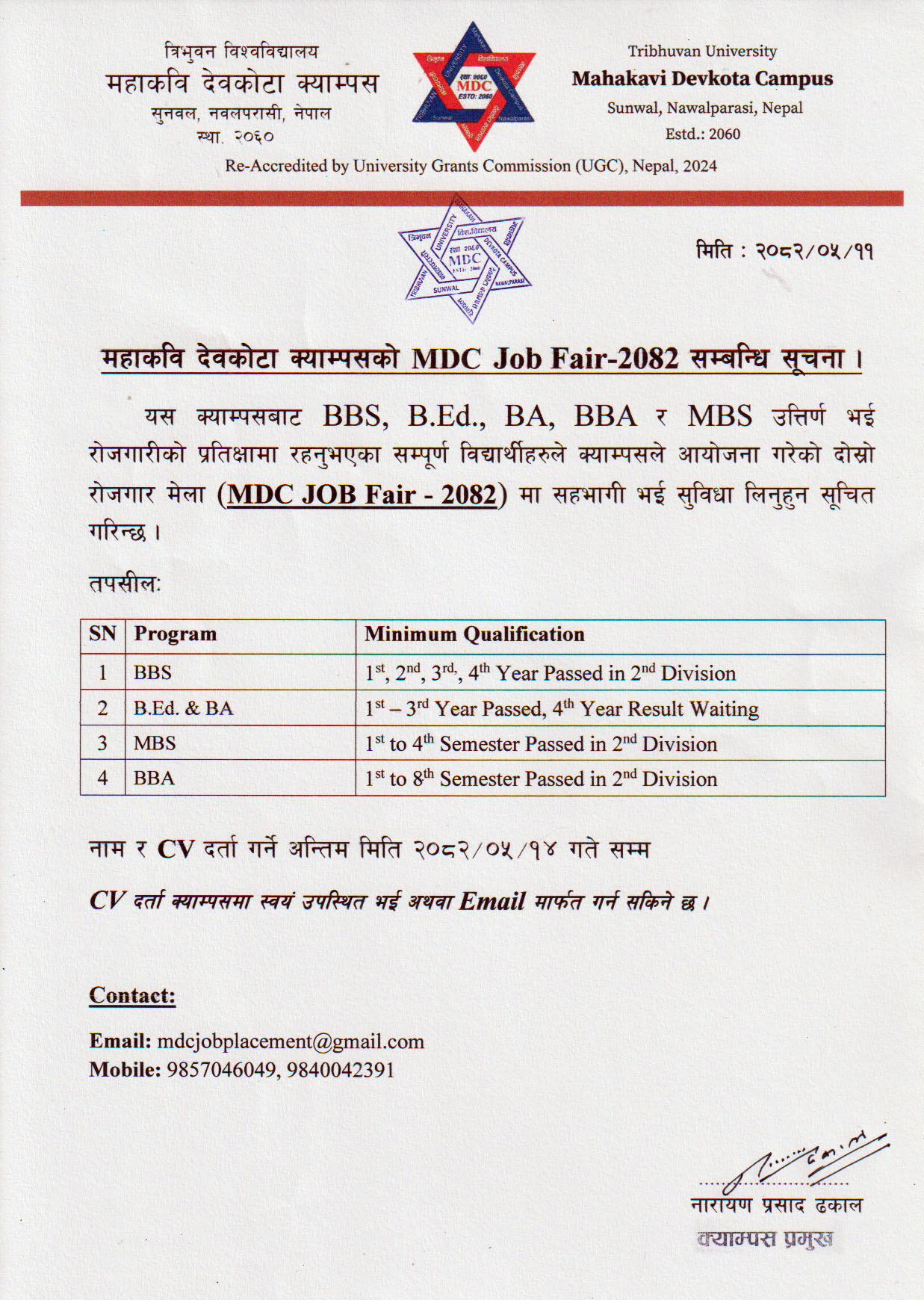 MDC Job Fair 2082 Notice