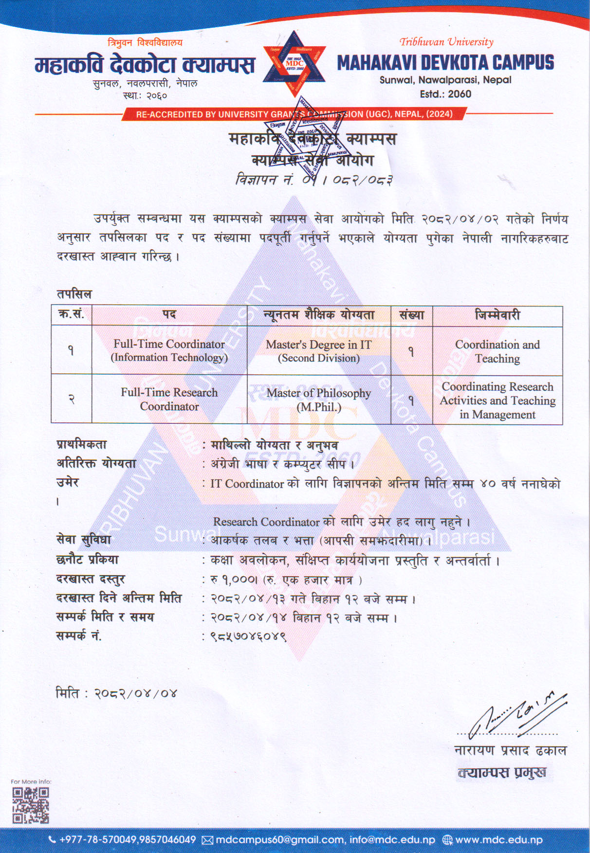 Mahakavi Devkota Campus has launched Masters of Business Studies (MBS), one of the most sought...