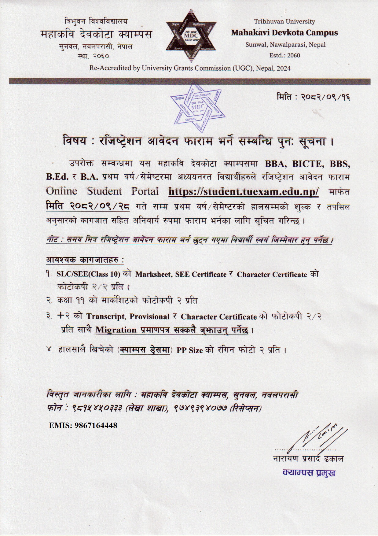 RE: NOTICE for Registration Form Fillup of BBS, B.Ed., BA, BBA & BICTE [2082]