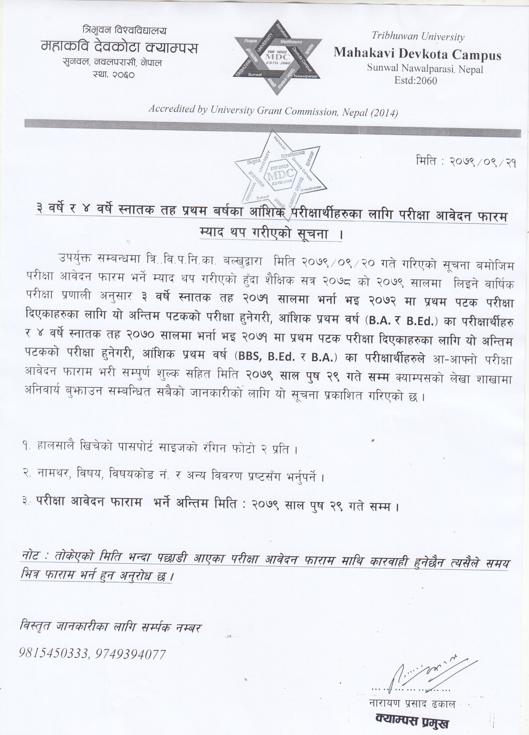 Re:Exam Form Fill-Up Notice To First Year Partial students (Date Extended)