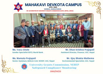 आज मिति २०८२/०९/२२ गतेका दिन यस महाकवि देवकोटा क्याम्पस अनुगमनको लागि उपस्थित हुनु भएका विश्वविद्यालय अनुदान आयोग (UGC) नेपाल साथै विश्व बैंकका प्रतिनिधिहरु र महाकवि देवकोटा क्याम्पसका प्रतिनिधिहरुका बीच क्याम्पसका